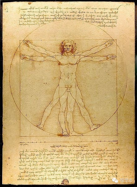 达芬奇关于人体比例的作品──《维特鲁威人》。达芬奇依照维特鲁威的描述画了《建筑人体比例图》,在代表宇宙秩序的方和圆中,放入了一个人体。