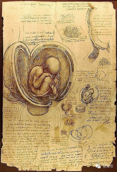 达芬奇的《胚胎研究》,约在公元1510年。