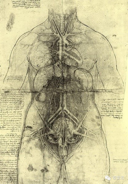 达芬奇掌握了人体解剖知识,从解剖学入手,研究了人体各部分的构造。他最先采用蜡来表现人脑的内部结构,也是设想用玻璃和陶瓷制作心脏和眼睛的第一人。