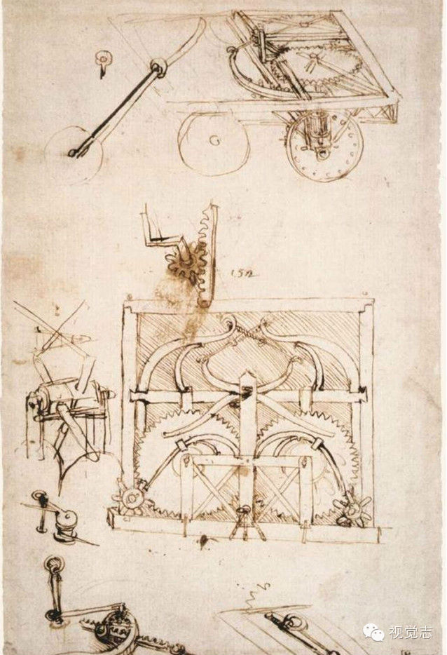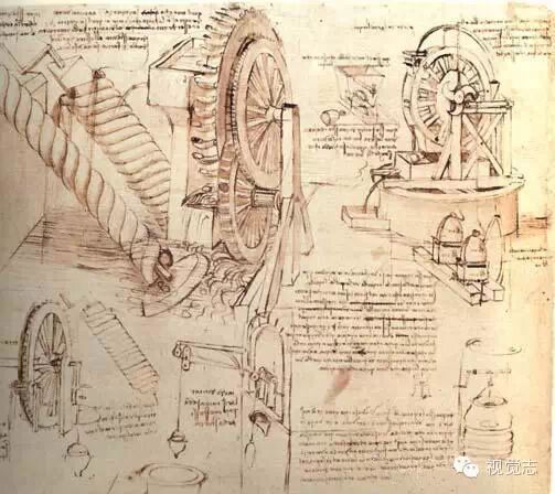 水下呼吸装置、拉动装置、发条传动装置、滚珠装置、反向螺旋、差动螺旋、风速计和陀螺仪……达·芬奇将他无数的奇思妙想呈现在世人面前