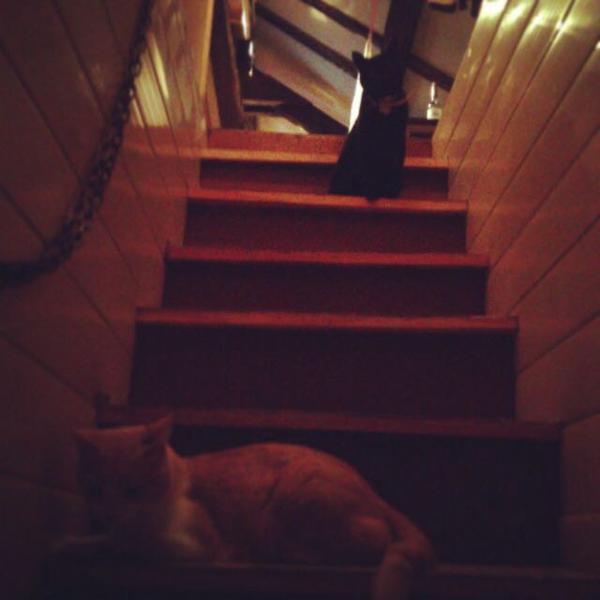 直到我走的时候,我想着家里一团糟糕,决定收拾好了明天再带她回去,于是跟朋友告别,下楼走到门口,她不是我寄养她时那样和veka站在楼梯上看着我,她拦在我和门之间,尾巴竖起来,最顶上弯成小勾,左右摇晃。