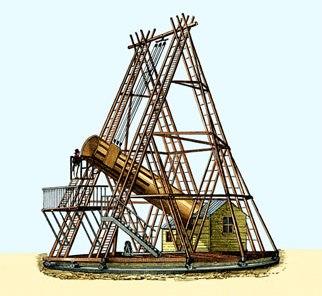 赫歇尔精度最高的望远镜:四十英尺望远镜,造价昂贵,需要复杂的机械配合操作,注意右下角的房子大小。