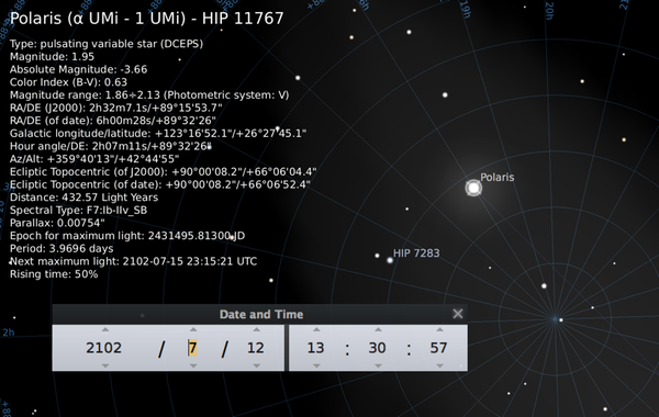 彩蛋部分——目前为止北极星还没有到最接近北极的时候。最接近北极的时候大约是2102年,北极星在天球上的纬度达到了89°32'26"