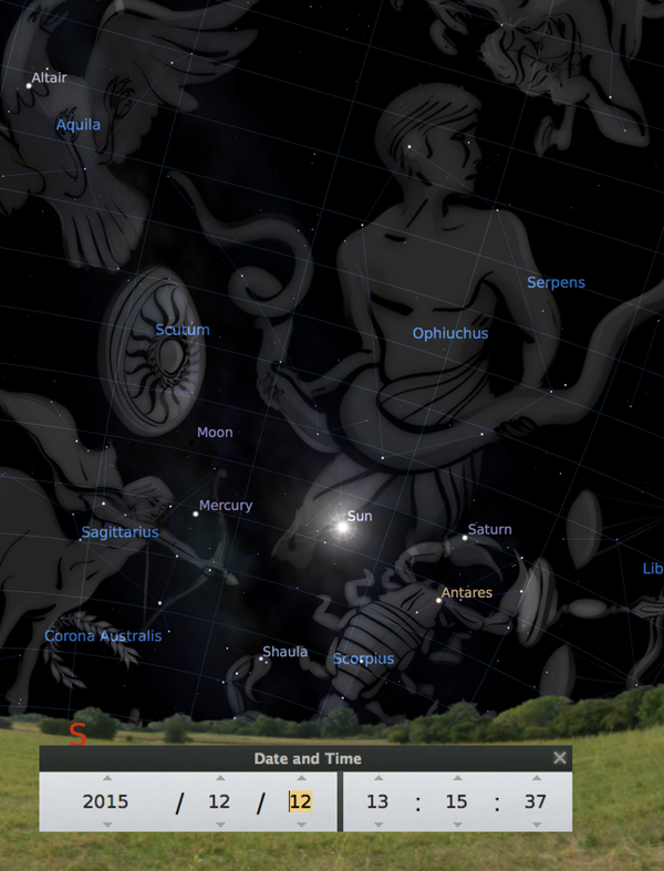 但是你发现了什么,我设定的年份是公元0年,这个软件不能再模拟更之前了。星座学说最发达的年代是古希腊年代,与公元0年只有几百年的误差,所以在耶稣诞生的时候,星座还是靠谱的。