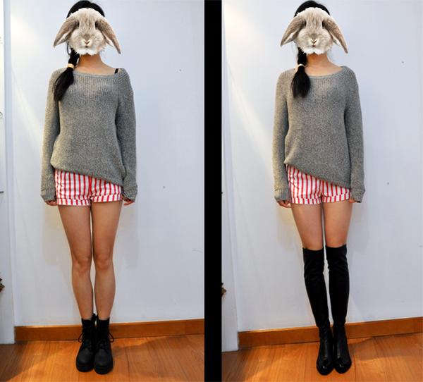 (啊哟喂我的个娘诶,不要再问小个子的姑娘能不能穿过膝靴!不要问了不要问了!如果不低于一米五五的妹妹你大胆的穿不要怕,穿了你就知道好!如果矮于一米五五请仔细观察自己的比例:如果你腿长身短比例优秀而且很瘦的话(参见小S),照穿不误,否则就会有点难做了。除非能买到长度刚刚过膝盖一点点而且包裹性好的,不然不要轻易尝试。另外请搭配短裙短裤,越短越好。)
