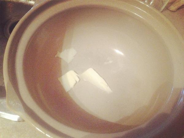 这个非常非常重要。油能够让内壁附上一层香香的锅巴,而不是米全焦掉。用什么油应该无所谓吧,我用的黄油,但有人说用猪油最香:)