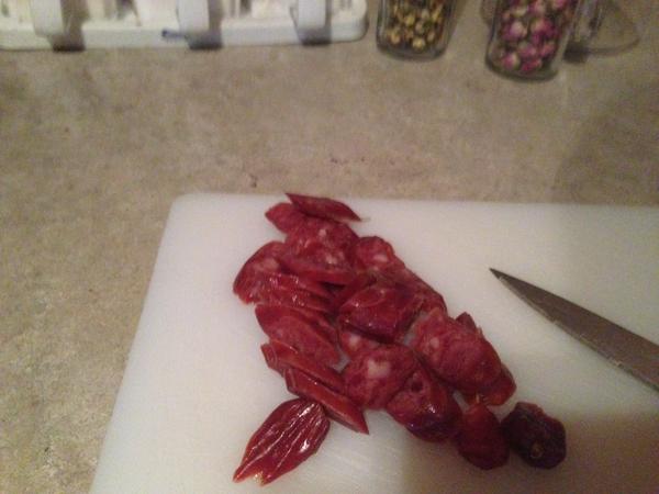 腊肠切成椭圆。(哎呀暴露了我巨烂的切功╰(*°▽°*)╯)