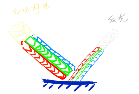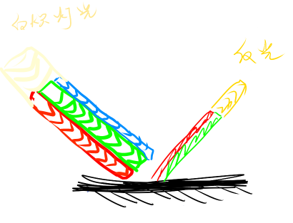 而前面说了粗糙的金色的物体,照到白光,反射应该是这样的
