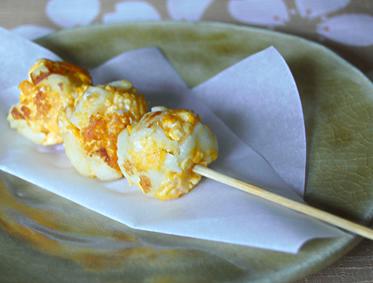 或者将吐司撕碎,混合鸡蛋沙拉和蛋黄酱,包成丸子串起来,或炸或烤。