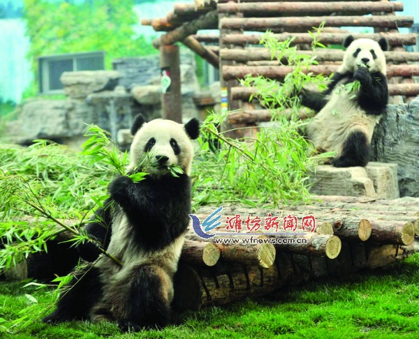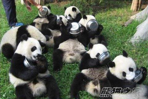 现在圆滚滚们的生活条件很好,夏天都是躺在空调房里身边一大堆竹子还有娱乐设施,like
