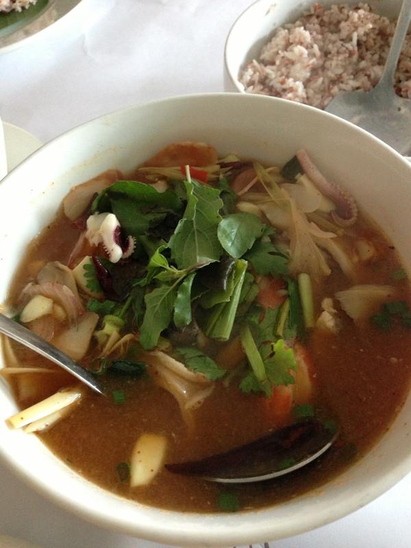 7.确保汤滚了,把海鲜都放进去!不要煮太久,太久都缩了,口感和卖相都不好。大概五分钟就可以。如果找到这种小葱头(紫色那个),可以放海鲜之前放进去。同样不要煮太久。