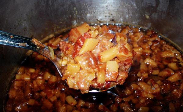 记得在台湾曾经吃过一位老饕自己在家制作的卤肉饭,完全不用一滴水,纯靠米酒经常时间的炖煮,全靠酒味完全挥发后留下的汁液融合在酱汁里,脂肪和收汁作用下让酱汁在唇边有点沾粘感,味道更为香醇而迷人。