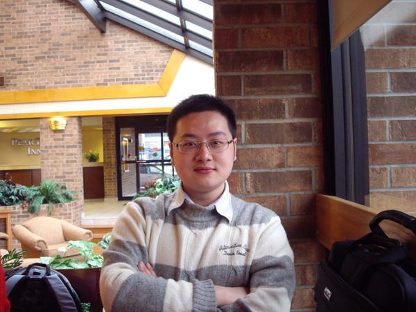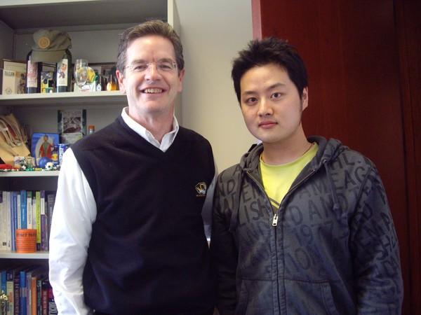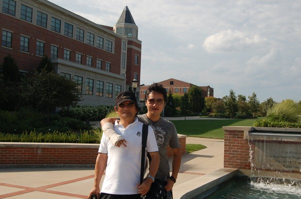 刚去美国的时候,学习压力还是很大的,虽然吃很多(美国食堂都是自助餐,我和几个中国小伙子每天在那边看书,边吃饭,吃完汉堡吃Pizza,吃完Pizza啃鸡翅),但是还是瘦了一些,体重差不多180了。期中考试完来和教授套近乎的时候拍了一张照: