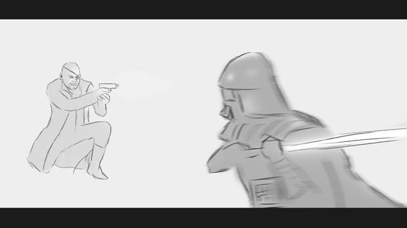 当晚,唐尼来到仓库,熟悉的人影让他惊呆了,那人分明就是自己过世多年的养父里比奥。里比奥看到唐尼时,也有几分讶色。但里比奥很快镇定下来,要求唐尼交出盒子。就在唐尼即将递出盒子的一瞬间,里比奥用原力锁住唐尼的喉咙,又掏出一柄光剑,就要刺向唐尼。