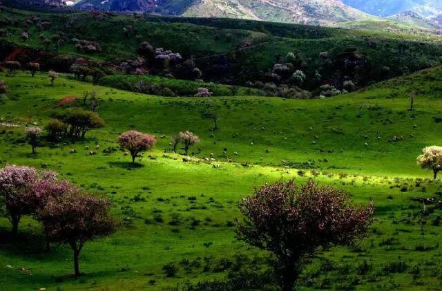 巩乃斯河汹涌西流,远山含黛,奇峰突兀,花草弥谷。雪山倒映在湖泊中,漫山遍野都是松树和野花,林场有瀑布飞溅,泉水萦回,景色迷人。