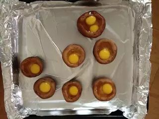 香菇要选着大一点的比较好装蛋蛋,蛋液别太满烤的时候会溢出的。烤箱温度要适当调整每个人的烤箱温度都不一样。
