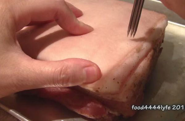 这里说说脆皮大猪肘的做法吧。(上次做的时候过程没拍照,这里暂且引用YOUTUBE的视频截图好啦)。