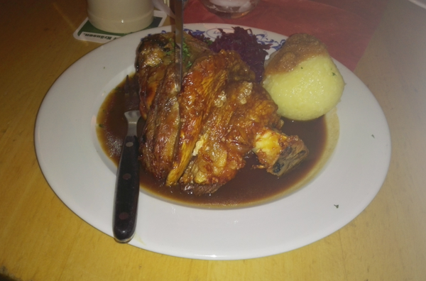 这是我当年在慕尼黑 的Hofbräuhaus拍的,Eisbein口味一般,做法暂且不提;
