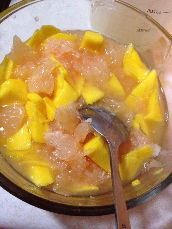 原料:芒果,西柚,三花淡奶,椰奶,西米