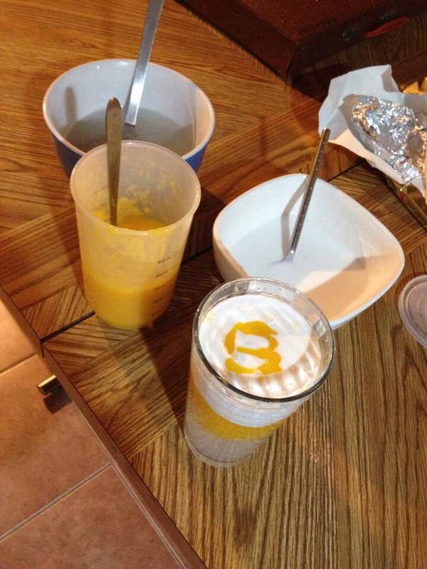 三层都准备好了,全都冷却好了,咋们就来玩层层叠吧~用勺子一层一层放杯子里,好啦,开动!(☆_☆)