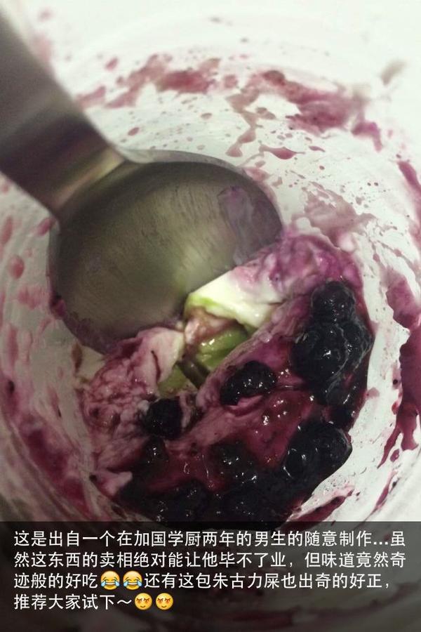 蓝莓酱加一点开水兑开,也可以不兑,我只是嫌它太甜了。甜味