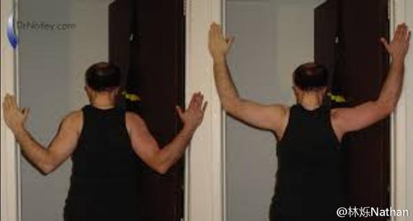 http://pic2.zhimg.com/f6671c72663956f098e5e7d3215c8625_b.jpg一个非常好的动作用于防止办公室人群的上交叉综合症(含胸,驼背)动作从不同角度牵拉了紧张的胸大肌,胸小肌。你可以找一面墙,身体往后靠,将手臂外展,大臂与前臂呈90度。然后试着将手指以半月形的轨迹往中间靠拢,上背,手臂,头在动作过程中尽量贴紧墙面