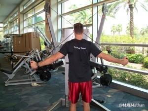 在之前设定好肩胛骨的情况下,将弹力带往前推,或者是图二进行动态环抱
