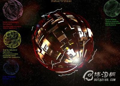 也就是说~这货就是一个把太阳包裹起来的大铁球,直径可达2亿公里,内附太阳能电池板太阳能热水器之类的玩意儿,以此向人类提供无尽的能源。更赞的是,这个大家伙不但是发电站,而且是一台巨型的空间站(太空城),可以住人哦!地球那点表面积跟这厮比起来简直就是沙粒跟沙漠的差距啊!实际造出来后,这个大家伙不但完全“移不动”,就连你也得跟着它移动,你还别不服,地球都得跟着丫转你不动咋整?