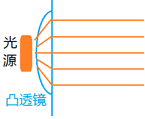 但这些系统都更加复杂,并且也非常厚,显然不能适用在闪光灯上。那么为了解决“闪光灯射向前方的光线发散”这一问题,人们很自然的想到了利用凸透镜: