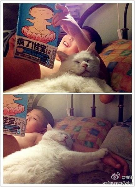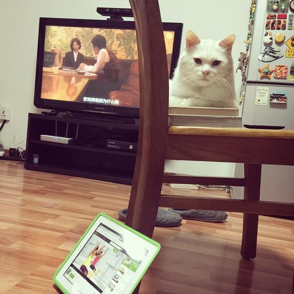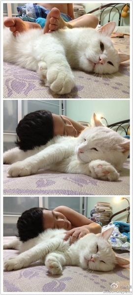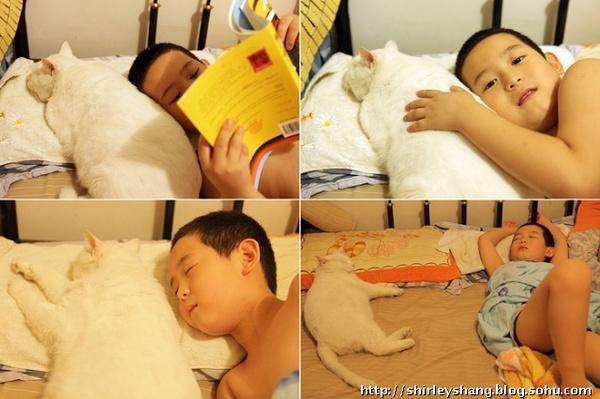 他愿意陪我,陪老公,陪侄子看电视、看书、锻炼、干活、睡觉,哈哈。
