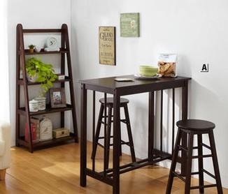 简易吧台桌(早餐桌):http://pic1.zhimg.com/0dcba78175ef6b910c9e759706870e98_b.jpg亦可做工作台使用,在吧台桌上空我比较喜欢工业风格的铁艺吊灯装饰(TB80左右一盏)。