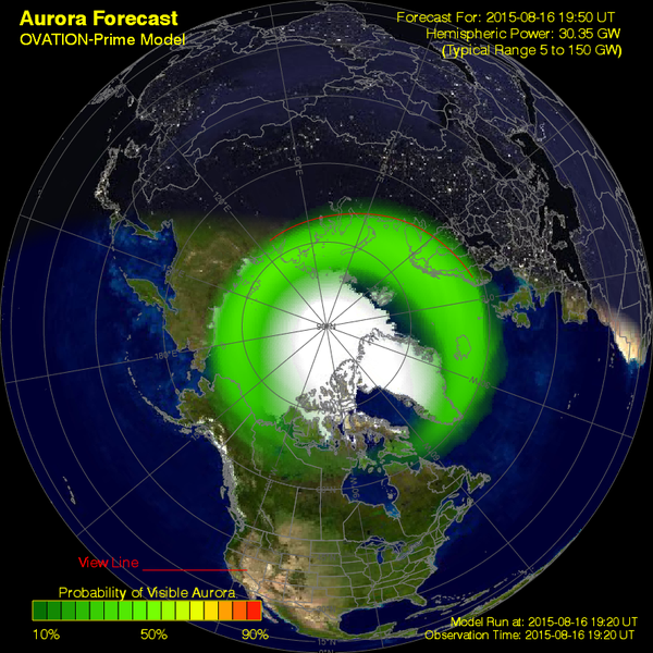 极光强的时候,这个圈变大, 弱的时候,圈变小。