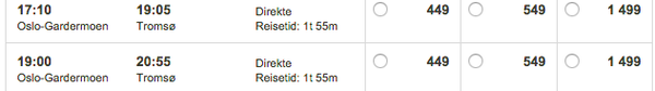Oslo 到 Tromso 可以坐挪威国内的廉价航空公司 Norwegian Airliner,飞行时间 2