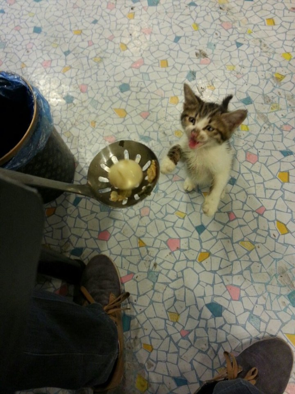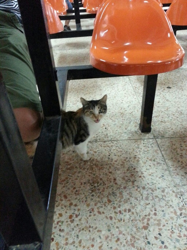 2.吃饭的时候,旁边的陌生小猫跑过来: