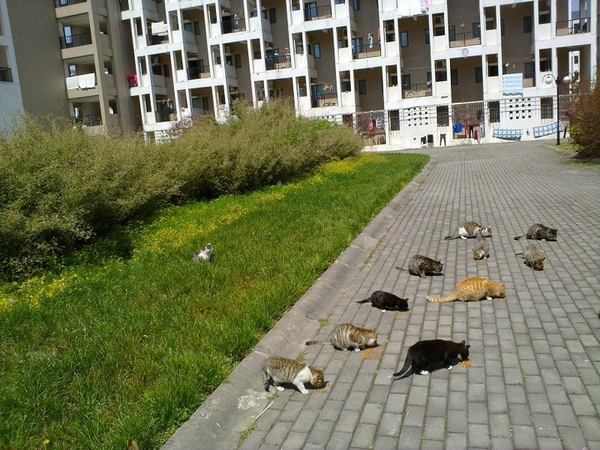 8.我作为一名有着人格魅力的领袖,我一声喊,就能召集群猫聚餐: