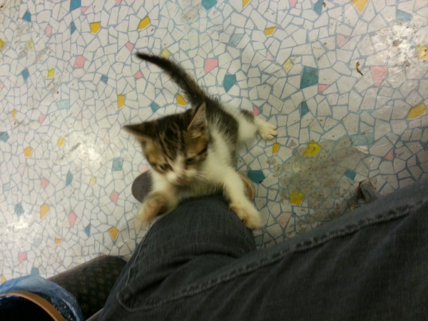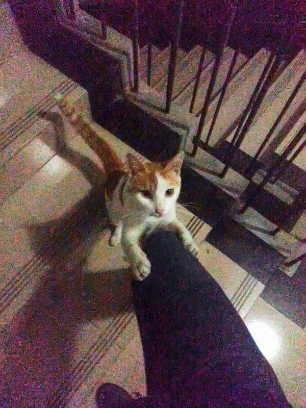 1.晚上上楼,不知道哪来的不认识的小猫扑过来就抱~~~想着腿被抱住就痒痒的