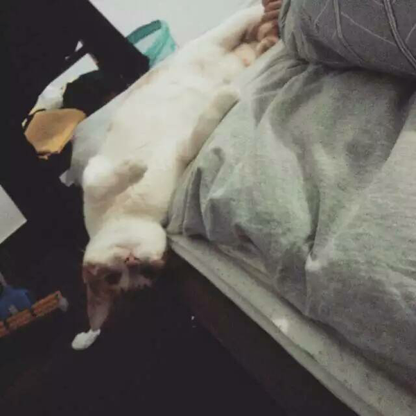 猫太肥了,主要是因为它大爸(男友舍友,柠檬的救命恩人)喂得太积极生怕饿着,隔三差五喂罐头,还有就是它经常偷吃爸爸们的外卖(炸鸡什么的),有次男朋友从厕所出来发现一对麦辣鸡翅失踪了,失踪是连骨头和渣渣都没了。。。。