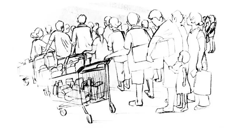 终于,你买好了所有的晚餐食材,又迎来了下一个问题——尽管现在是晚间购物高峰,超市里却没有足够的结账通道,人们排起了长长的队伍。