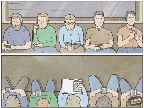 ▲ 「哟,难得看到一个看书的」