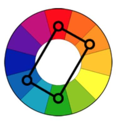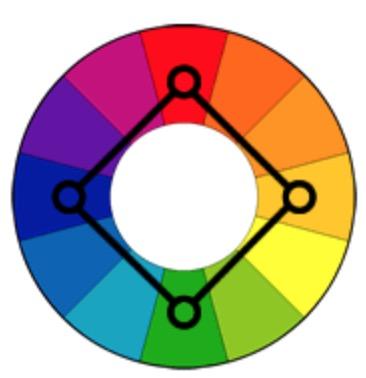 和前面矩形类似,方形色系也是两对互补色的应用,对色彩没有把握的话不要轻易尝试,很容易混乱。