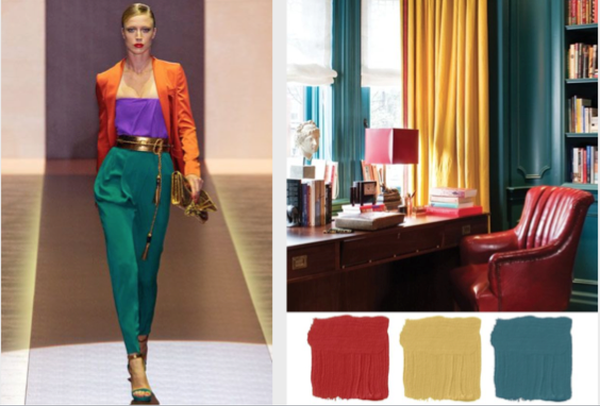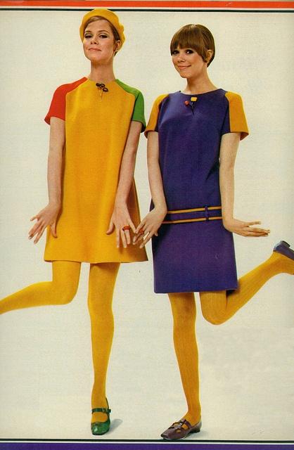 1967年vogue杂志里的照片,红绿的小面积运用,和大面积的黄紫色搭配。