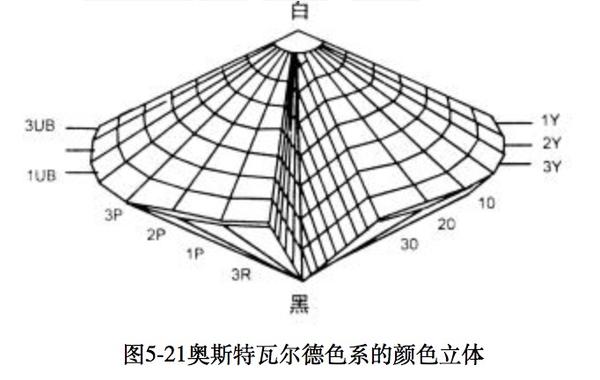 这样作成的24个等色相三色形,以消色轴为中心,回转三角形时成为一复圆锥体,也就是奥斯瓦尔德颜色立体。