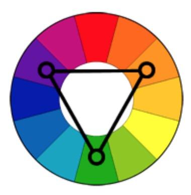 这种色彩搭配通常都非常的有鲜亮活泼,但尽量不要用三个大纯色的搭配,要用它们降纯后的的灰度色,然后也是要有一个主次关系,一个颜色为主,另两个为辅。