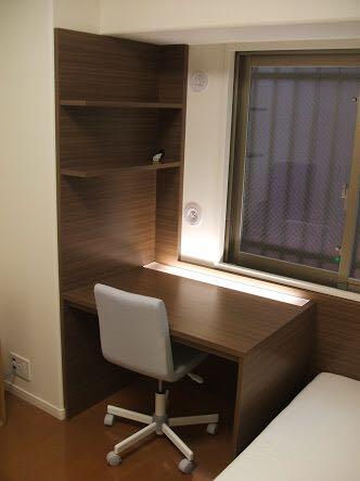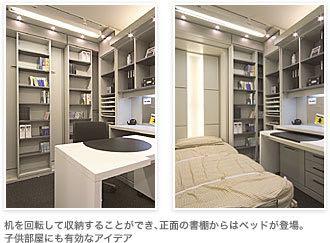 不需要隔离空间,只是简单的柜子和书桌组成工作空间。能过节约空间但是可能造成晚间工作和休息的忍的相互干扰。