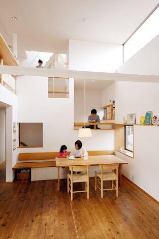 主人喜欢旅行与日本酒。希望能够有收藏相机以及酒杯等的场所。以及,在这个空间中能够独处,也能够和家人分享旅行的故事和小酌。