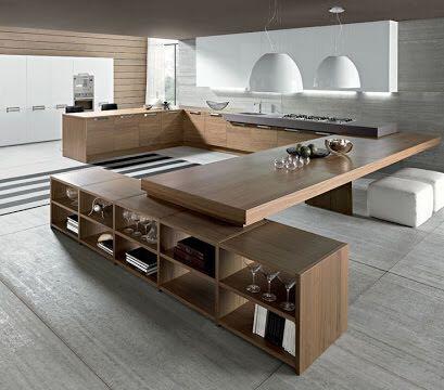餐桌台或者厨房操作台延伸出去作为工作台的一部分,一物多用,整体感觉非常棒。