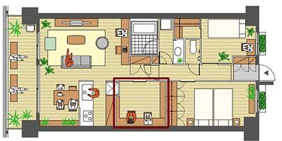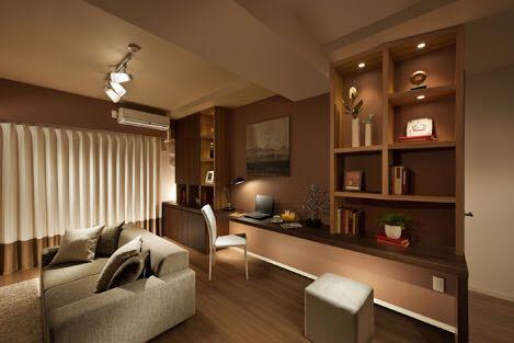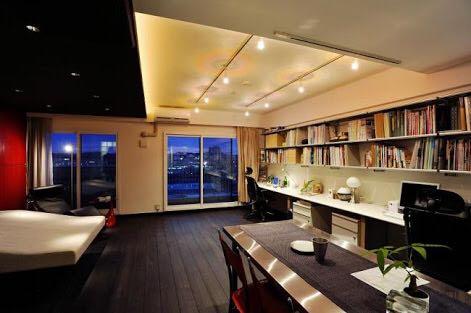 https://pic2.zhimg.com/ba47de5a191724469a7cef12187e4915_b.jpg(1)这个是类似于第一个平米的布局。客厅一角的一面墙作为依靠布置书架和一体化的桌面,工作室和客厅共处一间但是在行为上拥有相对独立的空间。