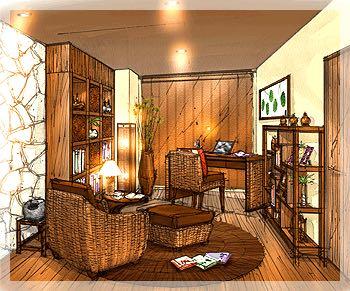 3.带中式设计的书房(刚发现日本人也有好这口的:))