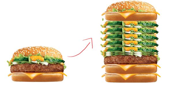 感觉吃不完了?这对于一个有着追求膳食健康的理想、要一个堡扛起一整餐的营养供给的进步汉堡来说,才刚刚开始。