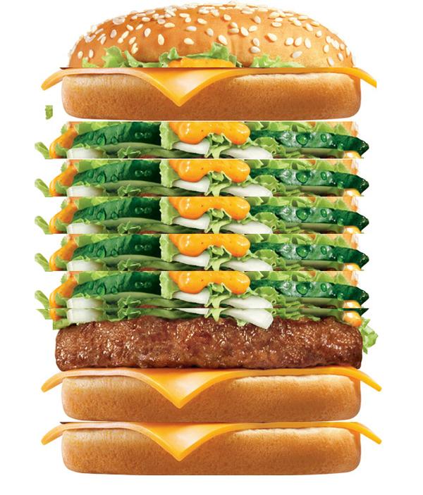 我相信,这个世界上除了subway应该没有哪个地方能买到我们改造出来的图三这样的“健康”汉堡。而遗憾的是,subway的蔬菜绝大部分还都只是些生菜,缺少深色蔬菜。而且在中国,只要一出二线城市,基本上就找不着subway了,可是麦记和肯记的门店现在都开到县级市了。你们说,绝大部分人接触到的汉堡是哪种?